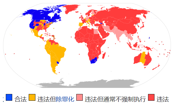 (全球娱乐用大麻的法律地位注:图中墨西哥尚未更新)