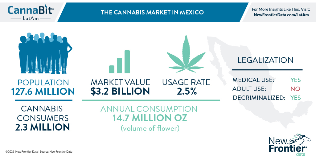 大麻市场研究公司New Frontier Data预测,墨西哥的年度大麻市场规模将达到32亿美元。
