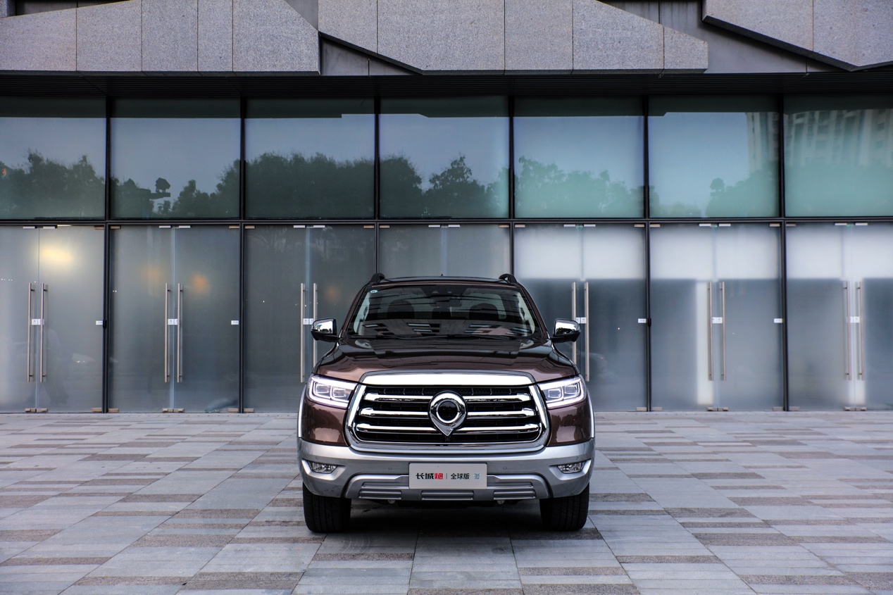 外观方面,全球版车型依旧延续了长城炮系列硬朗霸气的造型设计,大嘴式的进气格栅采用了更为粗壮的横向镀铬饰条进行装饰,同时品牌LOGO也变得更大,为整个前脸带来更强的力量感。再搭配尺寸巨大的鹰眼式前大灯,使得整个车头十分具有视觉冲击感。另外,前保险杠及轮眉都采用了与车身不同色的设计,整体看起来更有力量感。