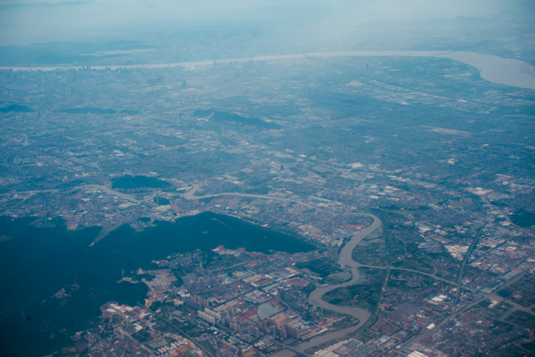 右侧大部分为杭州市萧山区,图中极远处的大江为钱塘江。 图片来源:维基百科