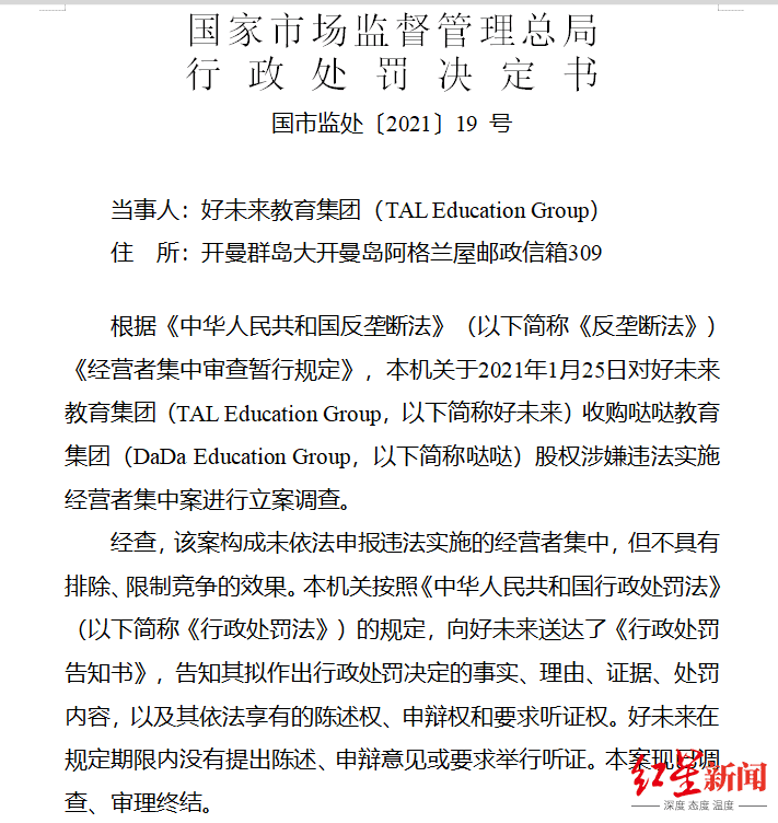 作为教育行业的头部品牌,上述企业为何会出现在通报中?违法实施经营者集中究竟又是什么含义?通过处罚是在释放出何种信号?