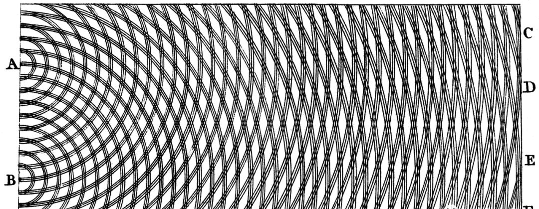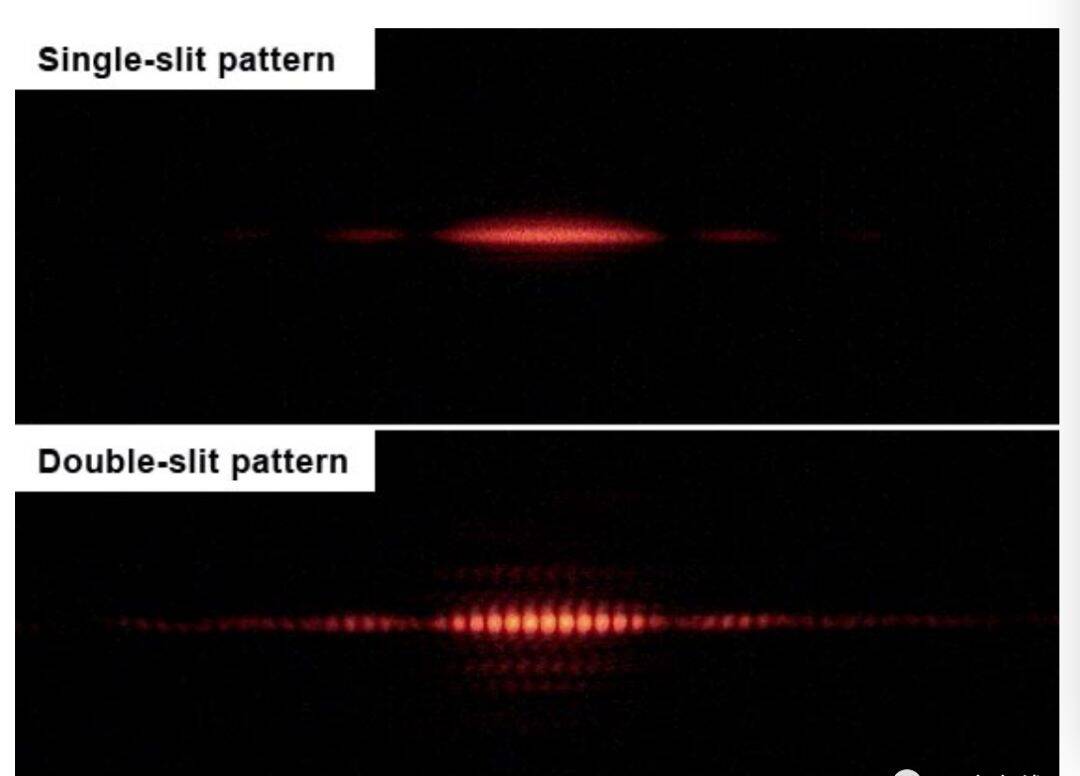 如果牛顿提出的光的微粒理论是正确的,那么屏幕上应当是与狭缝形状、大小相同的光的图案。然而实际上,屏幕上的光是更加漫射或衍射的,这意味着光具有干涉性,而这正是能量波所显示出来的。“干涉”是一种现象,即两种波(它们被认为是线性系统)对彼此的强度具有增减作用,从而使合成波的振幅更大或更小。