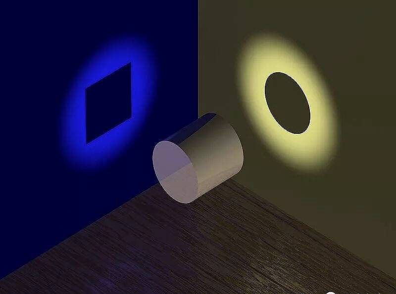 图解:波粒二象性示意图说明,从不同角度观察同样一件物体,可以看到两种迥然不同的图样。