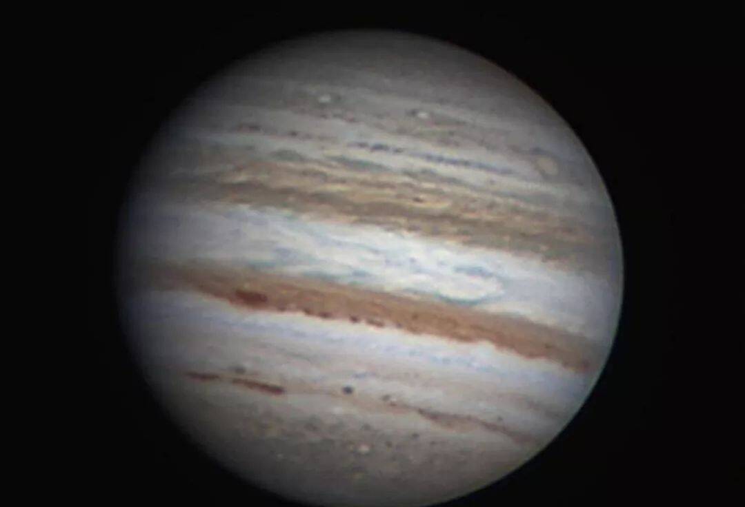 图解:一位天文学家在地球上捕捉到的木星光带图像。