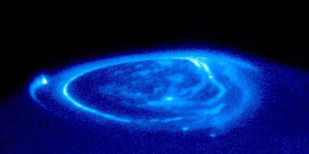 非常有趣的是喷射流消失在大约3000千米的地方,因为那大概位于那个深度气体会发生电离,电离的强度足以形成一个磁场。