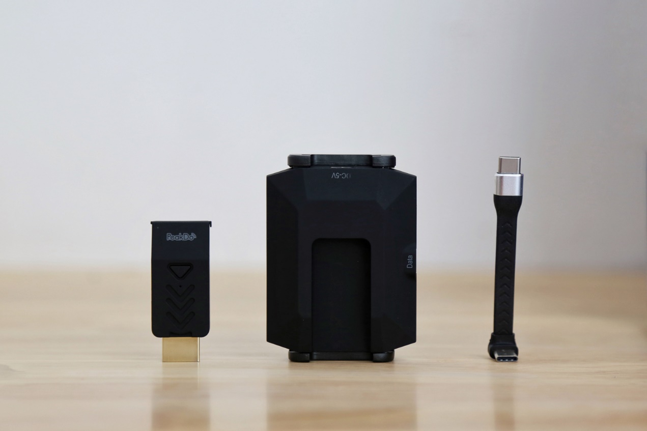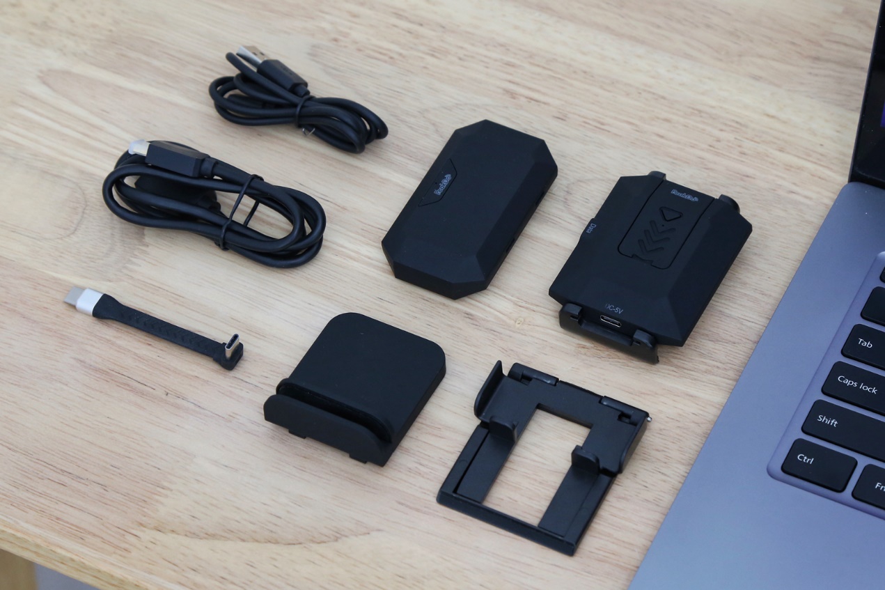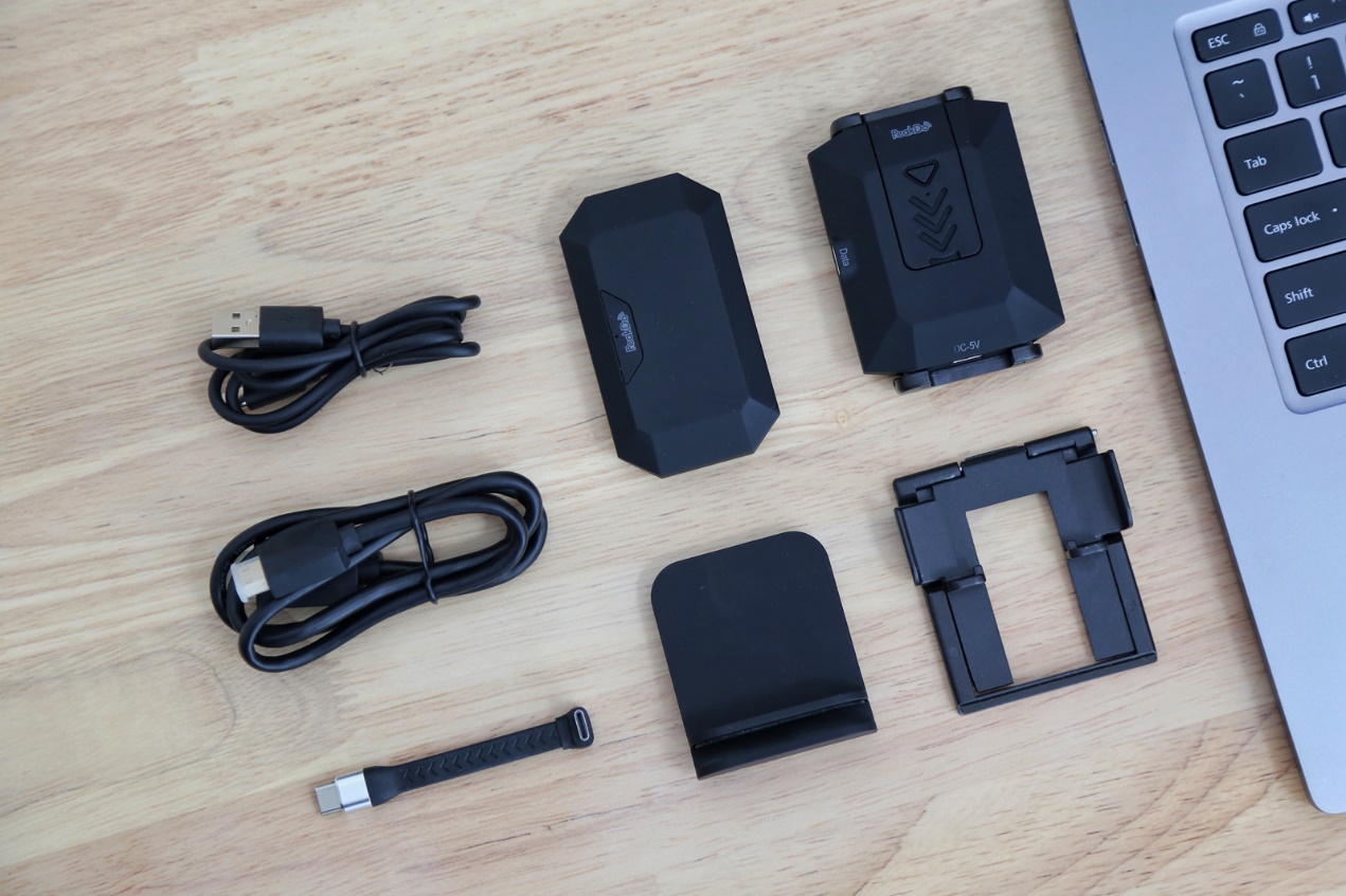 PeakDo 60GHZ毫米波无线投屏器主要由发射端和接收端两部分组成,以下就是所有的组件了。投屏器的整体设计风格很有科技感,简约不花哨,亲肤的材质+黑色配色,看起来就像一个很酷的数码装备。