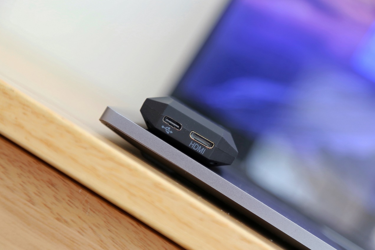 发射端部分,主要装置就是这个可拆卸式的背夹发射器,手机可以通过type-c接口连接背夹实现连接,针对电脑、相机、switch游戏机等设备,亦可以拆卸发射器直接连接输出设备的HDMI接口,不用再另外装APP,也无需网络,即插即用。