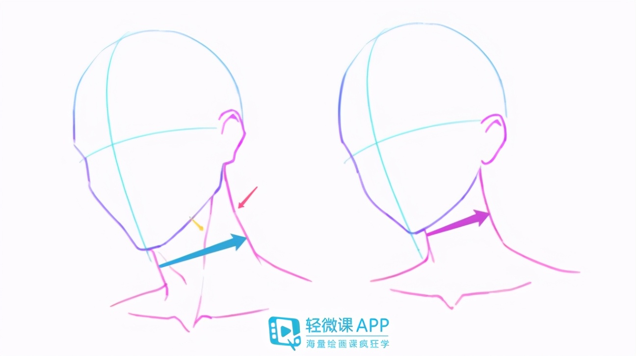 3、很关键的一点,脖子的粗细也是需要注意的,那么脖子上的胸锁乳突肌、喉结,通常也是画男生会去比较突出的: