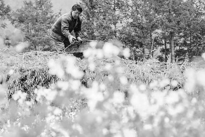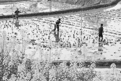 四川省宜宾市江安县大田村,农民在田里平整秧床。新华社发