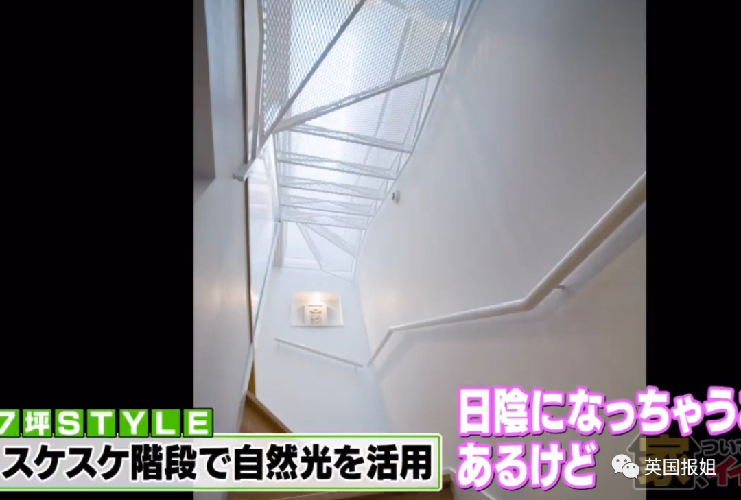 考虑到采光,家里的上层楼梯由合金材料制作而成,网状设计能够让屋顶上方的阳光倾泻而下。