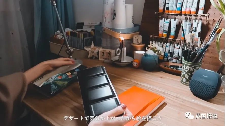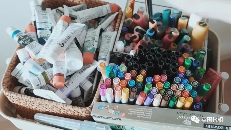 她的房间里,随处都能看到各种物件。因为自己平时要画画,角落里会有五彩斑斓的画具收纳。
