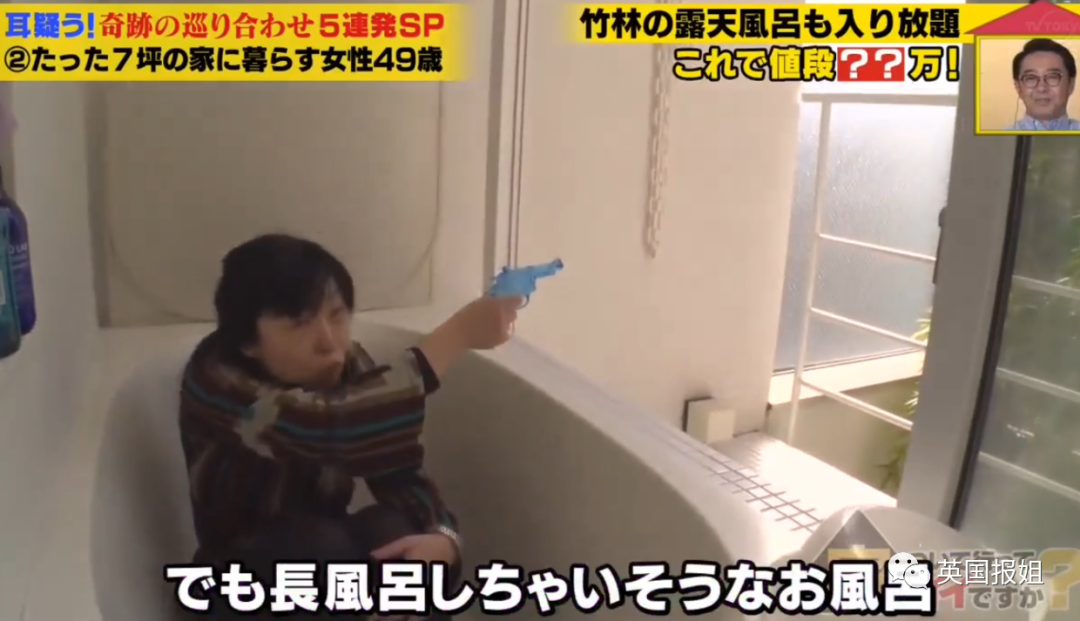 她还特意准备了小水枪,因为看着竹林泡着澡太过舒适,泡澡时间会很长,所以有时会拿起水枪,对着窗外的竹林射击。