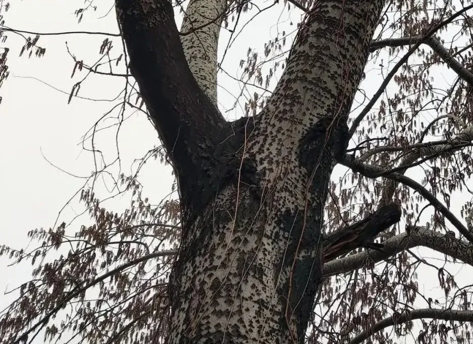 如何分辨雌雄杨树呢?可以看花穗。雄树的花期要比雌树早,雄树先开花。雄树的花朵就像毛毛虫一样,而雌树的花朵是由很多个小花组成的穗状花序。总体来说,雄树花穗比雌树更长些。另外可以看树皮,杨树雄株树皮粗糙、皮孔粗大,雌株树皮相对比较光滑。简言之,“男糙女光”。