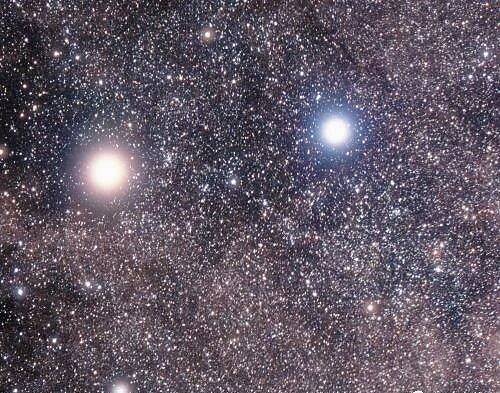 哈勃望远镜观察的阿尔法半人马A星和阿尔法半人马A星 图源:Planetaria