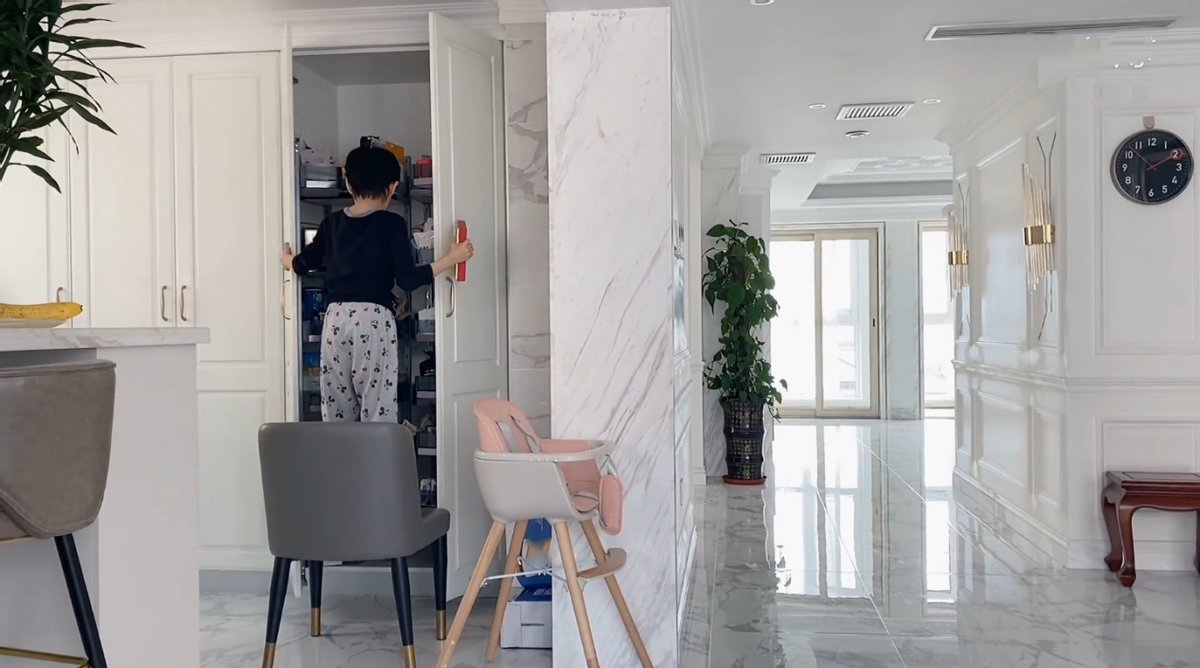 因老婆有海外留学经历,两人在上海的豪宅偏欧式,晒出的部分房间装修非常气派,整体看来疑似复式别墅,造价不菲。