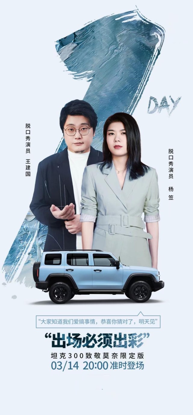 不得不说,此番上市的坦克300限量版的确值得越野迷和时尚达人期待,无论是独特的外观还是硬核的配置,都将时尚、贴心的属性展现得淋漓尽致,堪称宝藏车型。据了解,这款新车将会在3月14日正式上市,国内限量300台,届时还会有人气脱口秀大咖王建国、杨笠在线站台,感兴趣的朋友可要提前定好闹钟了!