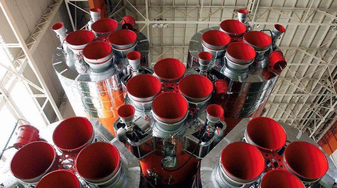 图解:联盟号运载火箭的助推级采用四个RD-107发动机,第一级(芯级)采用RD-108发动机,其均拥有四个固定的推力室,同时RD-107另有两个游动推力室,RD-108则有四个游动推力室