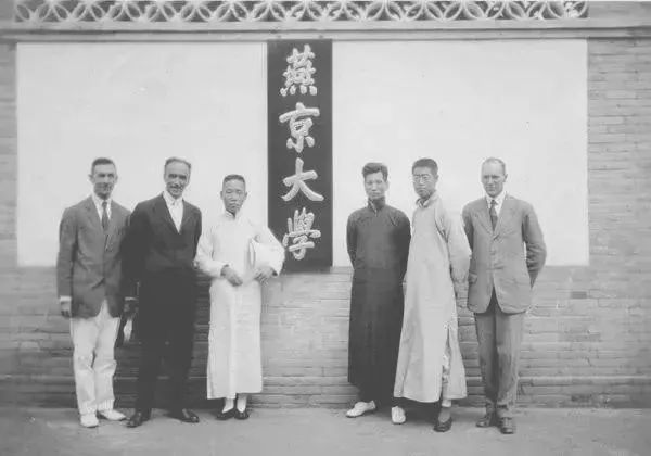 ▲中国近代教会大学代表在燕京大学留影