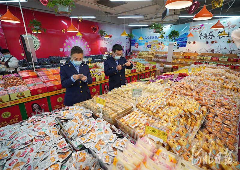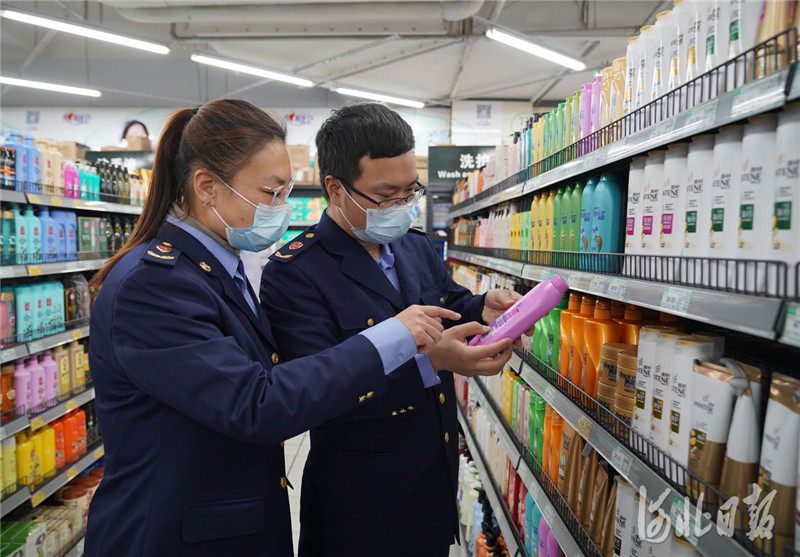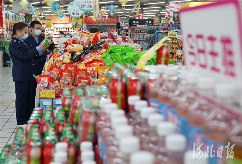 2021年3月15日,河北省邢台市市场监督管理局开发区分局工作人员在超市检查商品质量。 河北日报记者 赵永辉摄影报道