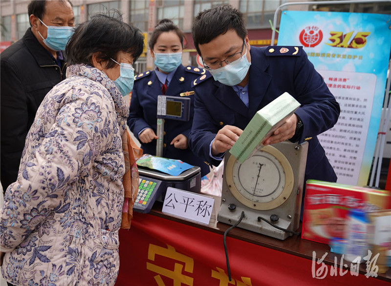 当日是3·15国际消费者权益日,河北省邢台市市场监督管理局开发区分局开展“守护安全·畅通消费”主题活动,工作人员来到街头、社区、超市、农资门市,为消费者提供法律咨询、消费维权、商品鉴别等服务,提高大家的依法维权意识和水平。河北日报记者 赵永辉摄影报道