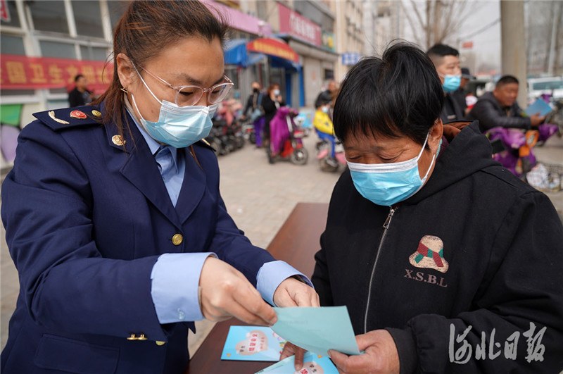 2021年3月15日,河北省邢台市市场监督管理局开发区分局工作人员在张家庄社区向居民宣传消费知识。 河北日报记者 赵永辉摄影报道