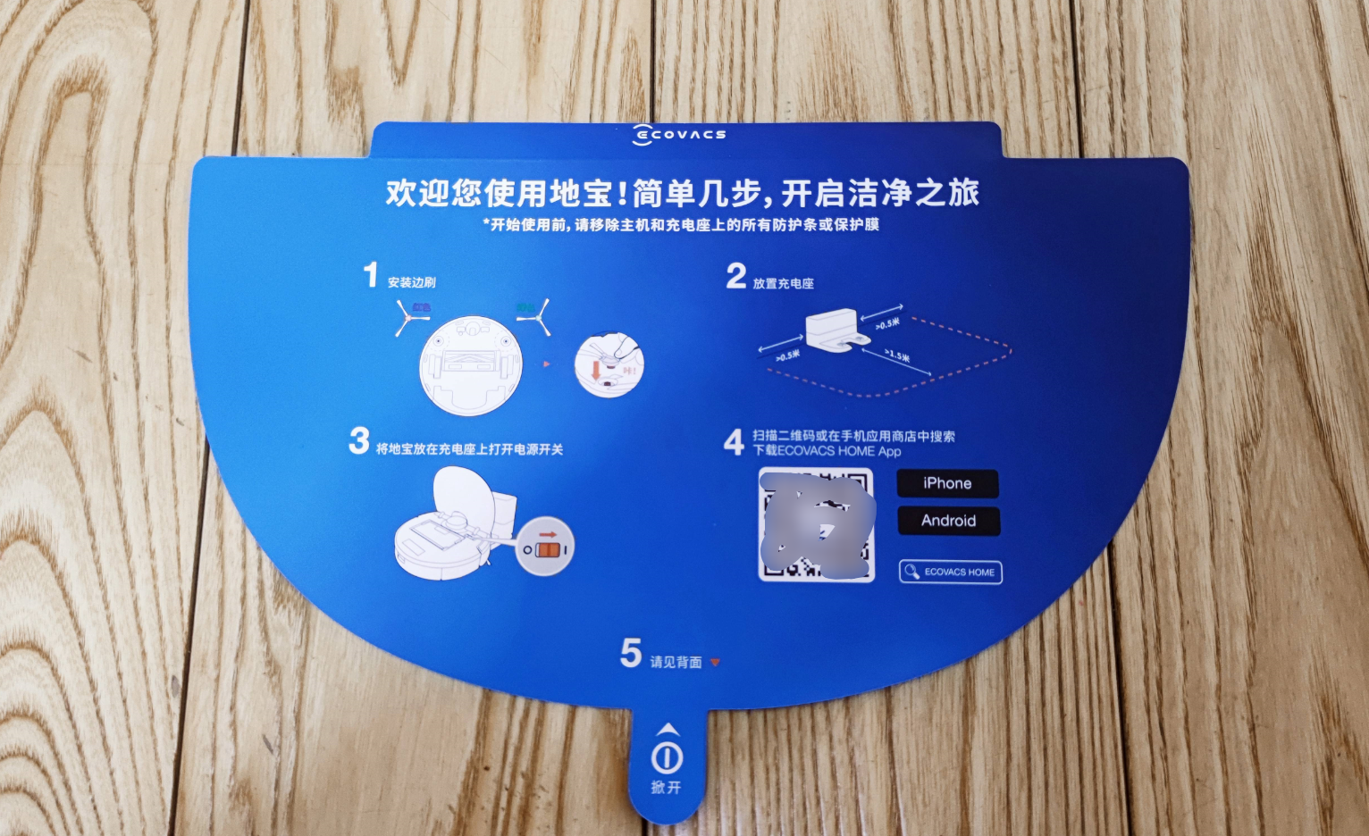 科沃斯T9 Power上手并不困难。因为第一次掀顶盖时,就能发现一张蓝色的使用说明。