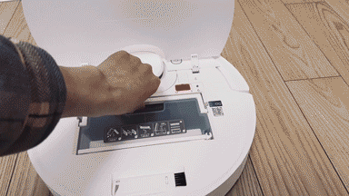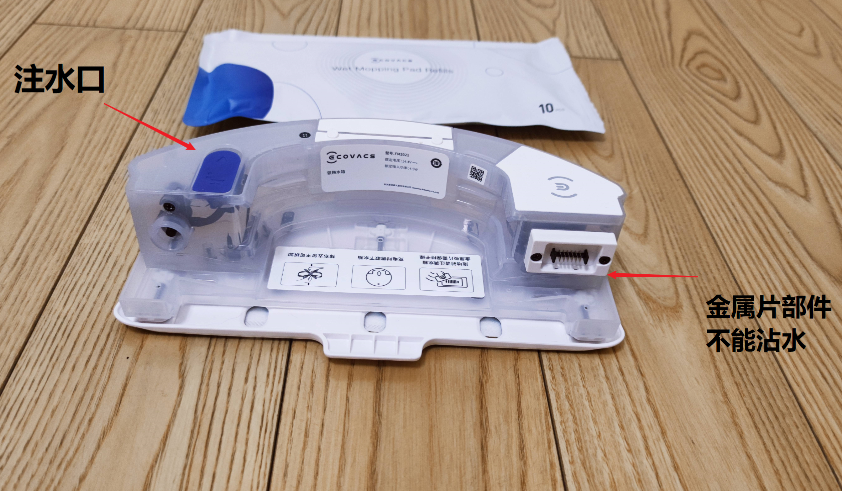 然后从扫地机后部拆换拖地部件,这样就可以拖地了。