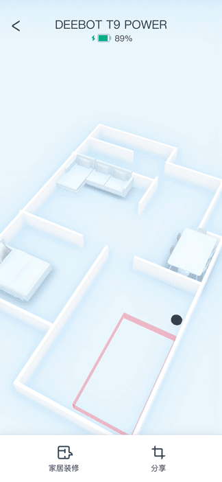 打开科沃斯T9 Power,初次使用。小家伙先是不慌不忙地兜兜转转熟悉一下周围环境。两分钟后开始工作。我观察了一会儿,大概发现了它的清扫规律:
