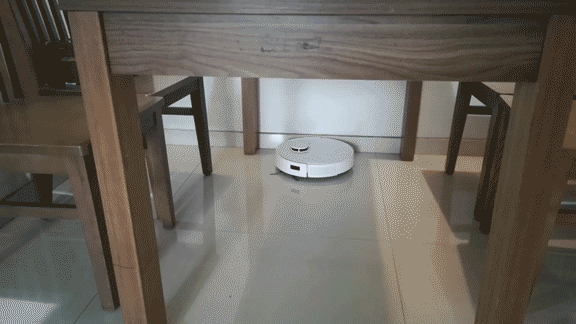 碰到腿多的地方,它会变得格外小心。实际观察下没有碰到桌腿和椅子腿,T9 Power都能小心翼翼的绕着清扫。