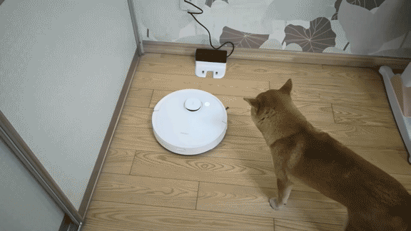 首次扫完之后也成功归位回充,家里的狗子也特意跑来表示祝贺。