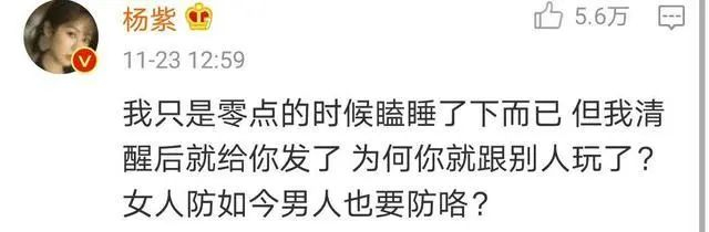 追问之后,还自己解释,说只是凌晨的时候瞌睡了下而已,但我清醒后就给你发了,为何你就跟别人玩了?女人防如今男人也要防咯?