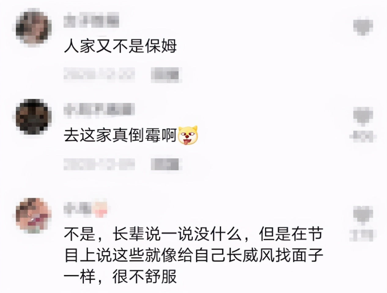 对于这种气势凌人的发言,网友们一致站在高圆圆的阵营中,指责她公公。有人表示说高圆圆又不是保姆,去这家真倒霉;也有人觉得长辈说一说其实没什么,但故意在节目上讲这些就好像故意给自己找面子,让人非常不舒服。
