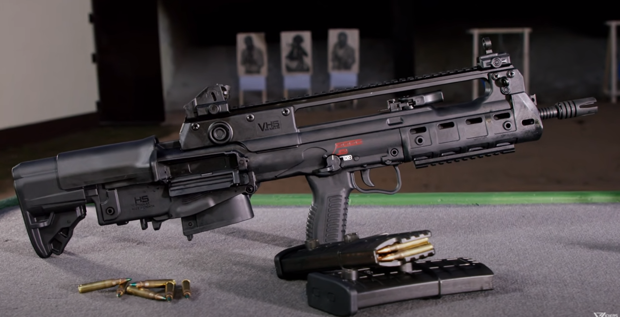 等到2013年的时候,HS公司又推出了新款的改进型的VHS-2步枪,核心机构其实没变,还是短活塞+枪机旋转闭锁。但是,改得特别像HK家的步枪了,有很浓厚的G36的影子。(不知道他们改名为HS,是不是就是为了冒充HK)。这把枪用的是5.56*45mm NATO,可以用北约弹匣。而且,其自身的弹匣,还带了个并联口,可以并联一个弹匣。