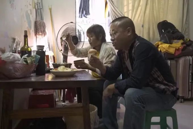 伍艳的家不大,墙面油漆斑驳,桌面上的2个芒果也有烂的痕迹。孩子不住家的时候,就她和老公两个人在家里,吃着简单,但总算热气腾腾的饭菜,才有家的烟火气。