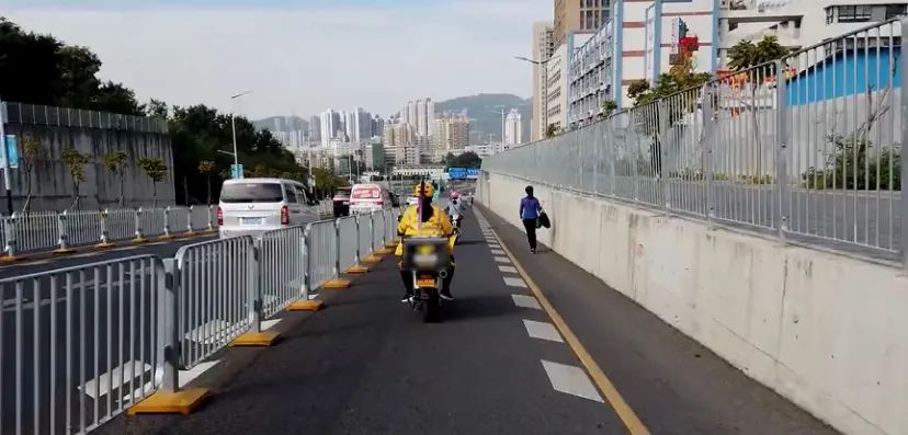没有全职外卖员的订单压力,宏燕骑行的速度相对也会慢一些,即便如此她还是连人带车摔倒过。