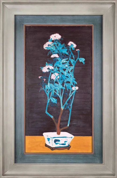 根据《常玉油画全集》第一、二册,以孔雀蓝描绘枝叶、衬托粉菊此独特表现的常玉花卉画作仅见 5幅,《静月莹菊》为当中尺幅最大作品,且是细节与色彩最细腻平衡的巅峰之作,见证了艺术家造诣臻绝的创作阶段。同时,以靛蓝、金黄二色为背景乃常玉晚期罕见用色之选,仅存 2 幅,《静月莹菊》是当中尺幅最大的作品,堪称常玉 1940-1950 年代现代东方色彩运用代表之作。