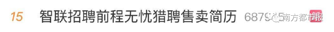 这样的问题不仅仅发生在智联招聘,许多卖家发布售卖简历的信息中常常宣称“猎聘智联无忧简历下载”“前程无忧智联猎聘简历服务”等,用同样的方式,记者也买到了前程无忧和猎聘网上求职者的简历。