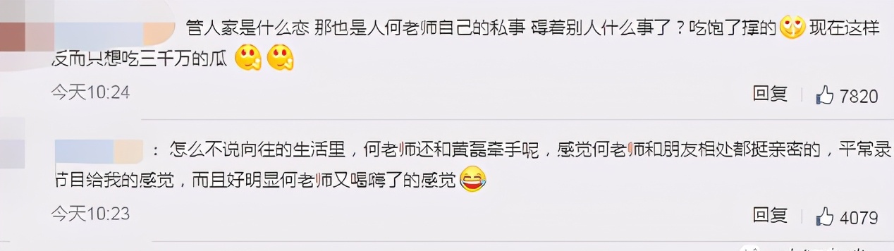 其实我想说的是,即便何老师真的喜欢这名男子,那也是人家的隐私,我们只要祝福就好,外人有什么资格说三道四?我们在网络上肆无忌惮地谈论别人的隐私,是不是有点不道德?