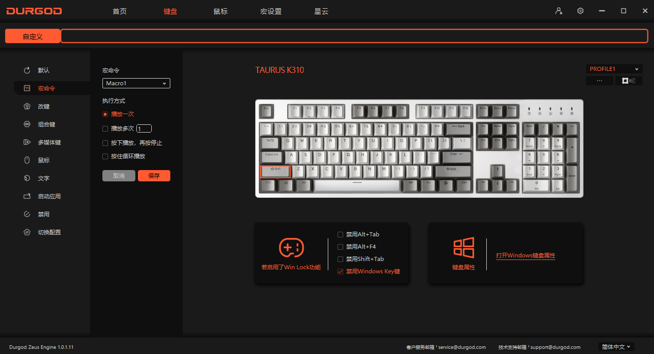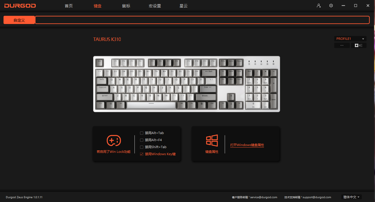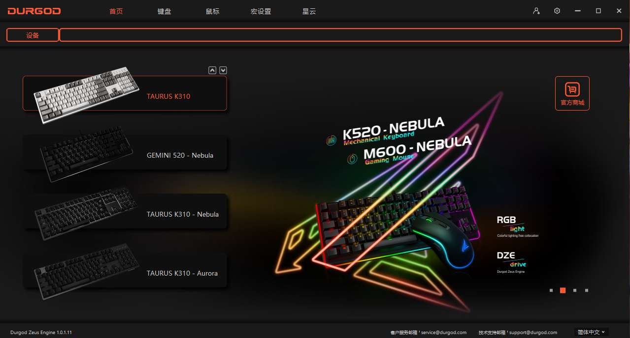 这个驱动软件的设计还是很完善的,主要导航栏也有菜单栏,从上方可以看出来功能模块主要包括首页、键盘设置、鼠标设置、宏设置和星云设置。我们可以根据个人的工作需要去做一些自定义的设计,比如宏命令、快捷键、改键等。这些至于最后的星云,主要是为RGB版本开发的功能模块,我买的是无光版本,所以就用不上。