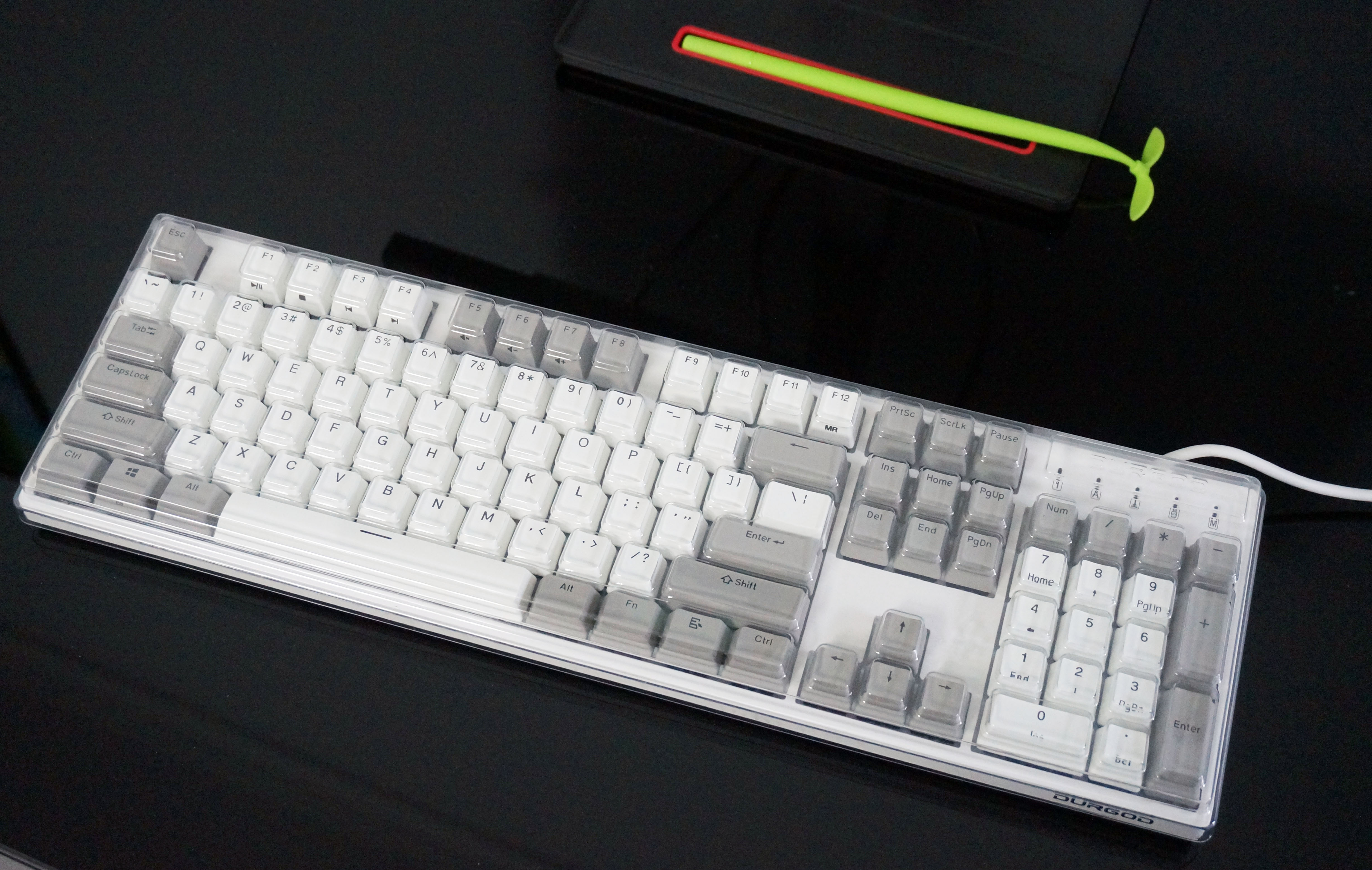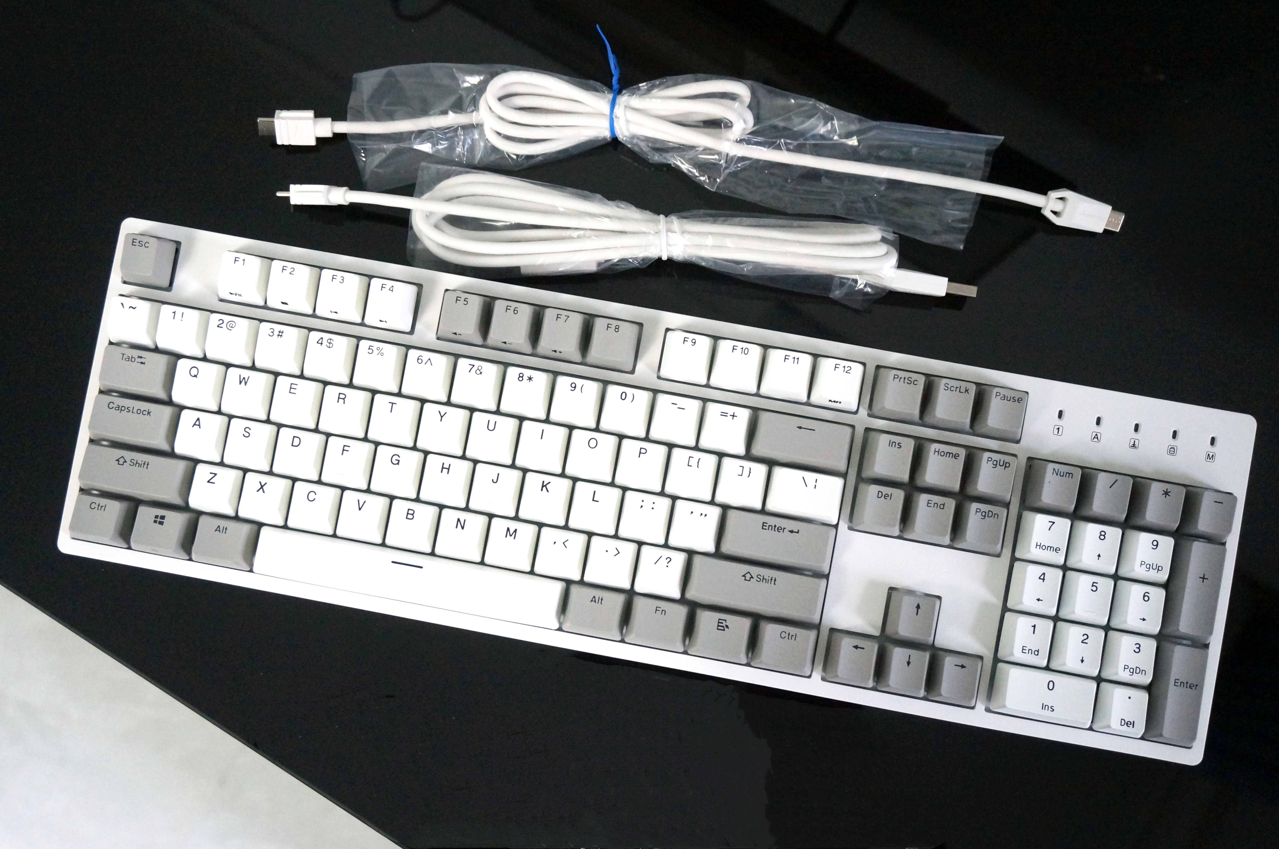 杜伽K310这款键盘的整体设计是有一个曲面和弧度的,可以说充分考虑了人体工程学,这种设计方式让每一排的键帽排列都有一定的梯度,同时保障整体输入时候的良好体验。颜色设计上,杜伽K310采用了白色和灰色的撞色设计,白色是带着一点温润的感觉很耐看,灰色相对是比较浅的,这样使得整个键面的观感不会太冲撞。