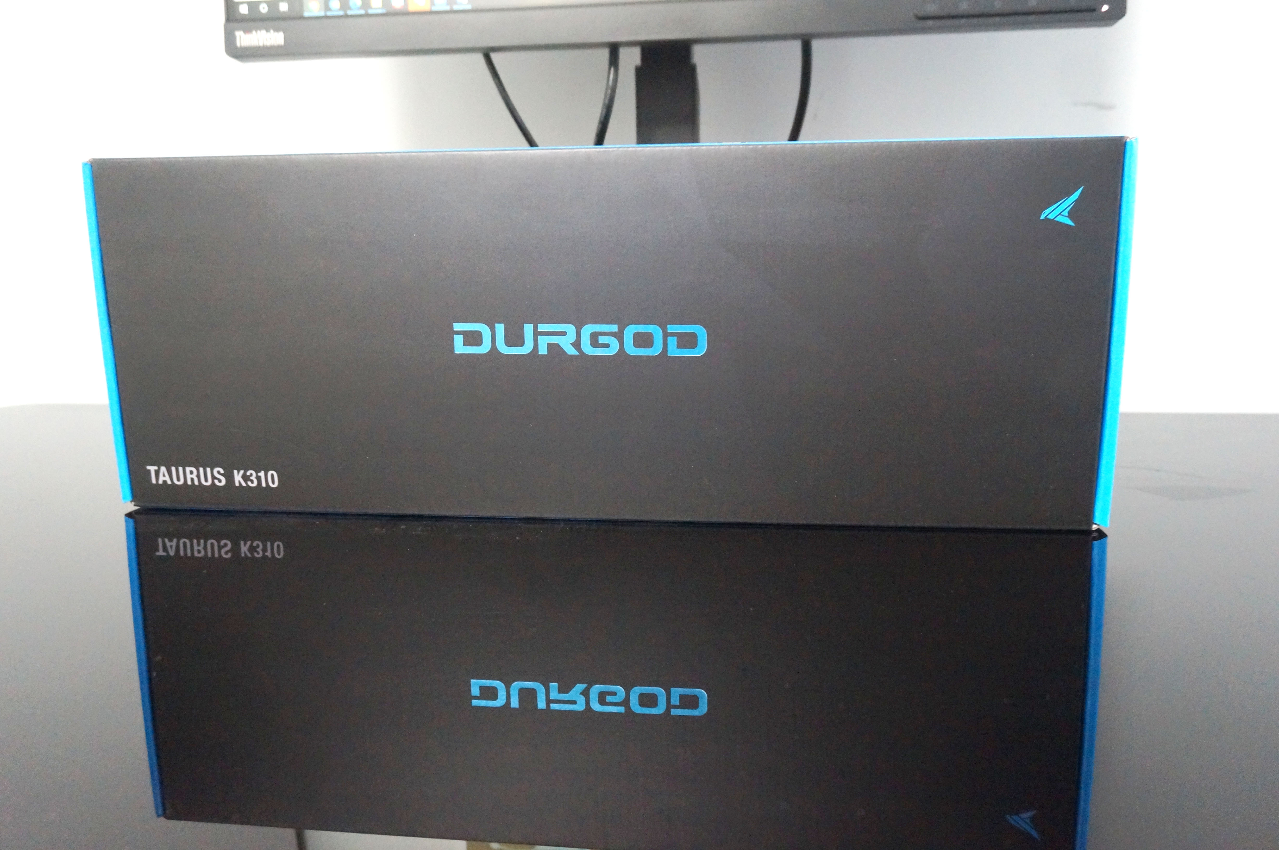 再吃了一次亏以后,我几经挑选后选中了杜伽的K310 无光的樱桃静音轴。需要说明的是,杜伽K310还有一个RGB版本,不过颜色版本少一些,然后我就觉得多一个RGB就多了200多块钱有些不舍得;而且我看着天然白版本那个白色和灰色的撞色感觉好舒,就入手了这个。杜伽Taurus K310樱桃静音轴无光版(以下均简称为杜伽K310)的整体包装非常有质感。它是有双层的包装,外面是杜伽定制的运输包装箱,内部还有硬质包装盒。包装的正面非常简单,中央为品牌logo,左下角则是产品型号,非常简洁。