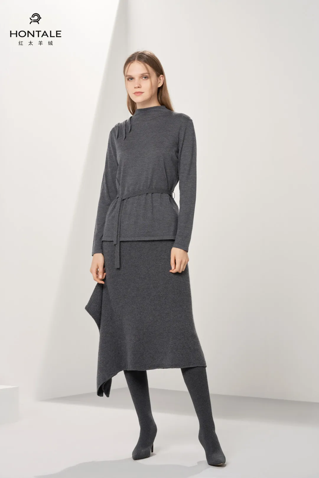 红太羊绒本季的设计主题为“绒合”。太虚辽廓而无阂,运自然之妙有,融而为川渎,合而为山阜;绒线翩雅而华美,蕴天地之毓琇,传而为匠艺,承而为锦服。取素织唯今用,化万物以传神,遂成“绒合”。