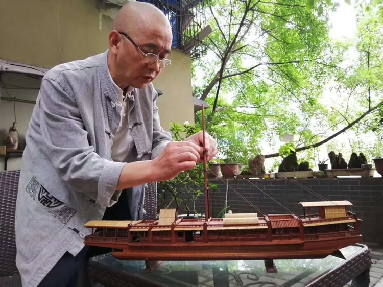 周平东长大后,便开始自己动手学习制作船模,“我记得是上个世纪60年代末期,我开始去街上捡一些材料,拿回家后自己做手工,我的父亲有空的时候就来指导指导,没空的时候,我就蒙着脑壳个人琢磨。”