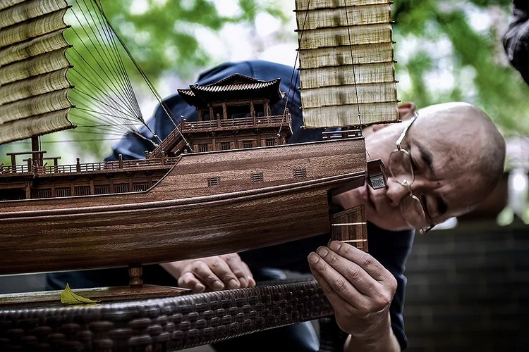 耗费一至两个月打造而成的船模制品,不仅仅是惟妙惟肖的缩小版古船,更是经过精雕细琢而成的艺术品。