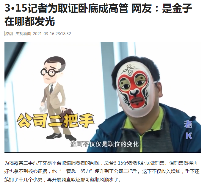 这位先生自称是央视315晚会调查记者老K,某年接到一个任务,要去调查某二手汽车交易平台欺骗消费者的情况。