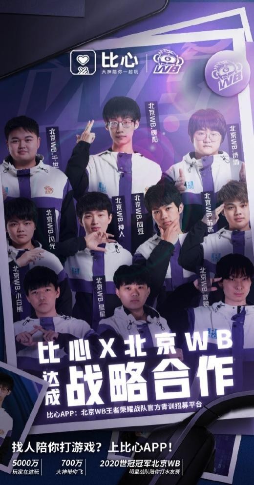 北京时间3月10日,也就是《王者荣耀》2021年KPL春季赛开赛前的一天,比心与KPL战队北京WB达成合作,正式签约。在随后的比赛中,比心将与北京WB一同征战KPL赛场,并且将在战队运营、队伍青训选手招募等多个领域展开深度合作。