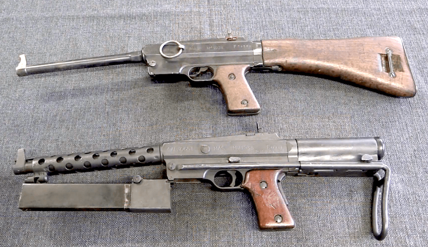 而关于MAS38冲锋枪,其原型是SE-MAS Mle.1935冲锋枪,属于一把试验枪。在二十年代那会儿,法国人就拿出了几款试验枪型,但是最终都没落实。主要原因还是法国人经费方面不足,之所以FM-24/29那么快定型了,原因是那绍沙机枪太坑了。