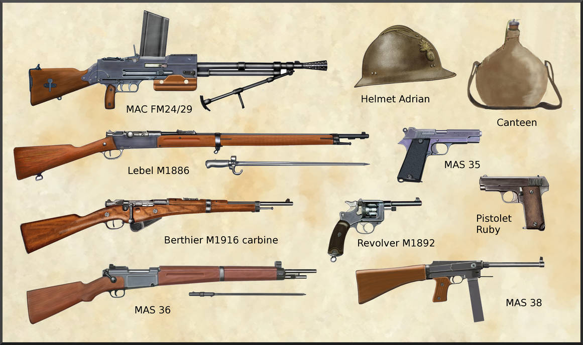 注意啊,这个计划在1921年就起草了,而相关零零散散的研发,在1919年就开始有眉目了,只是1921年正式整合,正式提出的。但是你看这个冲锋枪的名字,MAS38,很明显,这枪是1938年定型的,法国人拖了将近二十年才完成。这些计划里,执行最快的是轻机枪,最后研发定型的是那个长得挺像捷克式的FM-24/29。
