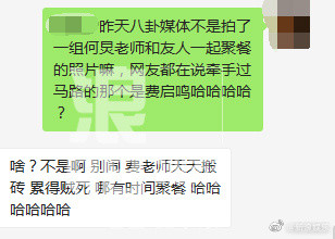 对于绯闻,费启鸣方已经辟谣:“不是啊,别闹!费老师天天搬砖,哪有时间聚餐。”