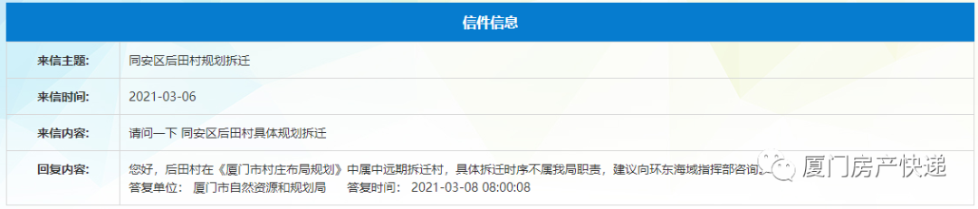 后田村在《厦门市村庄布局规划》中属中远期拆迁村。